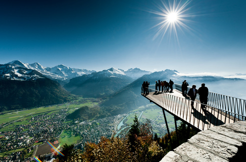 Auf 1'322 m ü. M. bietet Interlakens Hausberg - der Harder Kulm - beste Sicht auf Interlaken sowie Eiger, Mönch und Jungfrau.